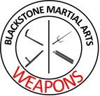 Each weapon progresses through Basics, Universal Forms, Blackstone Forms, Self-Defense, and Combat — from White Belt through Post-Black Belt mastery.